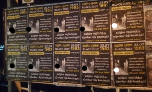 கறுப்புஜலை இனஅழிப்பின் 40வது ஆண்டை குறிக்கும் விதத்தில் தமிழ்தேசிய மக்கள் முன்னணியினர் சுவரொட்டிகளை ஒட்டியுள்ளனர். ஸ்ரீலங்கா அரசின் இனவாதபசிக்கு ஆயிரக்கணக்கான உயிர்கள் குடிக்கப்பட்டு 40 வருடங்கள்